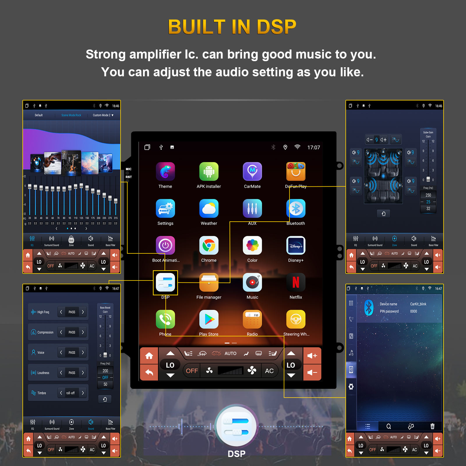 Built-in Carplay function,DSP,1280*800 high resolution,