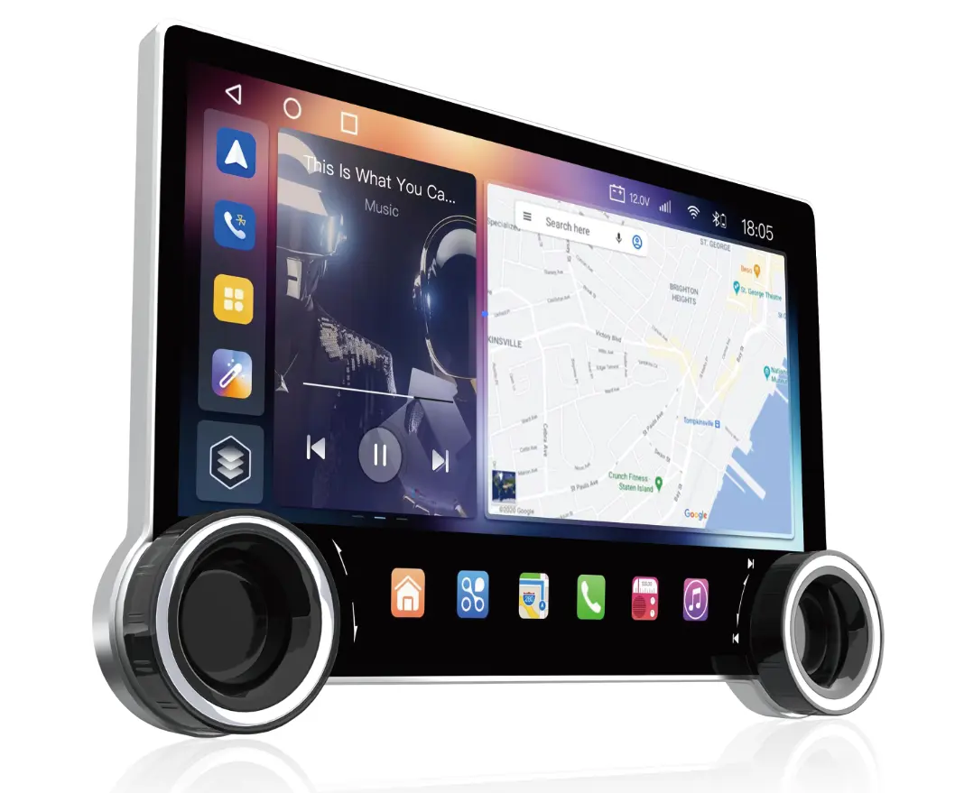 Supports wired and wireless Carplay, Android Auto, and can sync mobile apps, such as music、Maps, phone calls, etc.